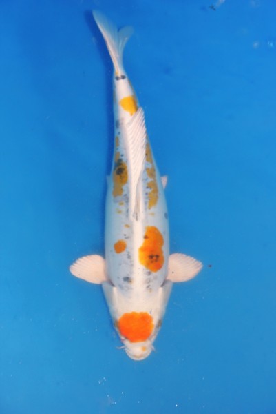 Ein toller Body mit leichtem, metallischen Glanz. Der Marutenfleck verleiht diesem speziellen Koi das besondere Etwas.