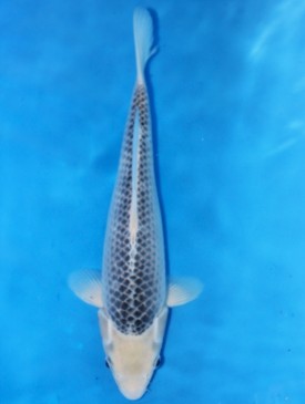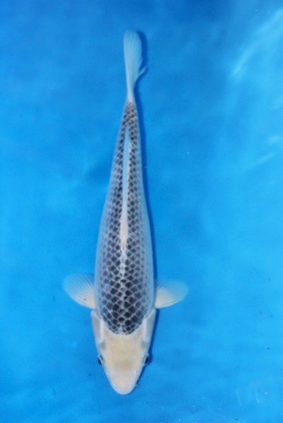 Schöner Snow Asagi mit absolut reinem weiß und sauberen Kopf. Das sehr saubere Schuppenbild fällt bei diesem Koi sofort ins Auge.