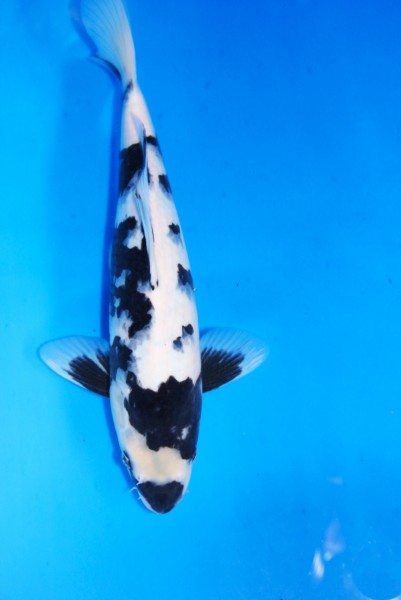 Spitzen Shiro Utsuri der Omosako Koi Farm. Dieser Name steht für absolute Qualität. Spitzen Hautqualität mit sehr reinem Weiß und eine satten Schwarz. Absoluter Hingucker. Foto von 03.2025