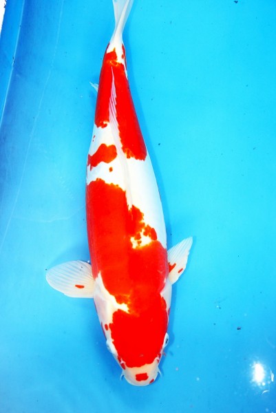 Sehr kräftiger Kohaku mit wuchtigem Körperbau. Reines Weiß und tiefes Rot machen diesen Spitzenkoi perfekt. Gutes Wachstum !