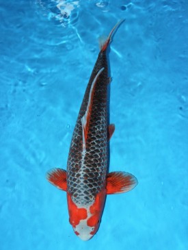 Spitzen Asagi mit perfektem Körperbau. Dezente Ginrin Beschuppung die diesem Koi eine einzigartige Note verleiht. Kräftiges Rot an Kopf und Flossen runden das Gesamtbild perfekt ab. Bild vom Juni 2023