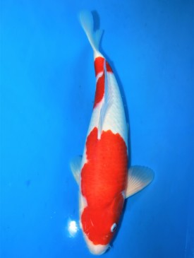 Schöner Kohaku mit guter Farbgebung und reinem weiß sowie kräftigem Rot. Bild vom Januar 2023