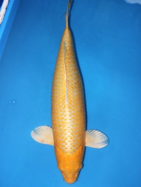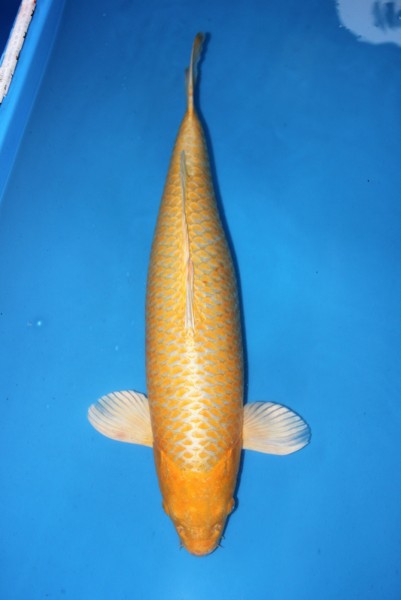 Sehr auffälliger Yamabuki mit top Körperform. Intensives, sauberes Gelb mit spitzen Fukurin in den Schuppen. Kräftige, ausdrucksstarke Beflossung. Makellose Schönheit ! Bild vom Juni 2023