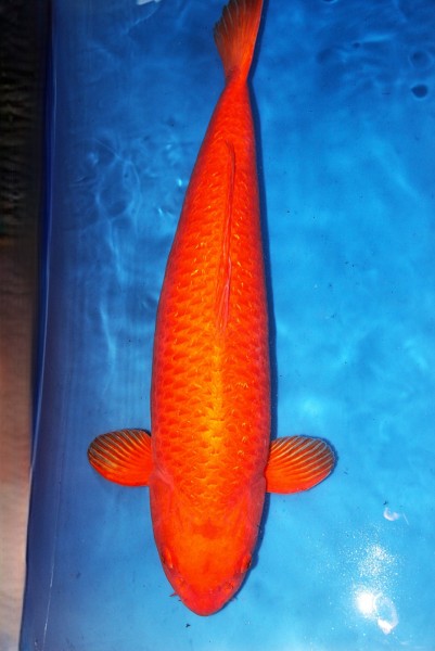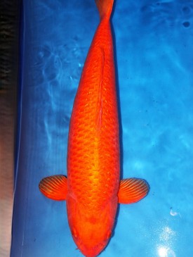 Aboluter Traumkoi - mein kleier Liebling. Sehr zutraulich und absolut verfressen. Satte Farbgebung gepaart mit einem spitzen Schuppenbild. Reichlich Zukunftspotential ! Bild vom 10.01.2025